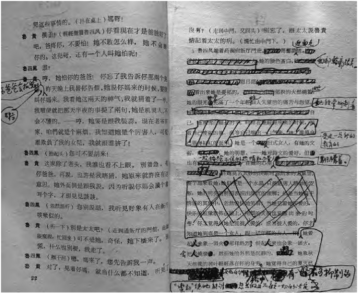 “付印本”中,當繁漪小傳中對她的刻畫只剩下“眼睛”時,她的“激情”就成了“不可抑制的蠻勁”所形成的“性格”,不再是“更原始的一點野性”。 她的“抑制”和“熱烈”就不再是一種自然主義的“氣質”,而成為現實主義的“性格”。