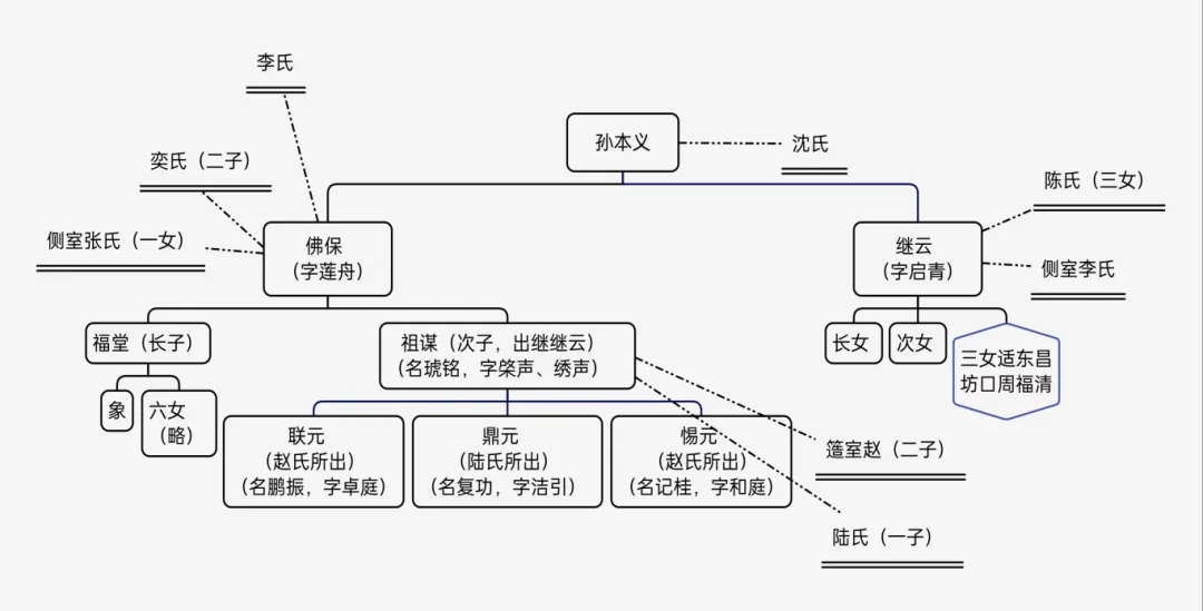 從《紹興孫氏宗譜》,可以看到孫氏家族相關人物關系(見圖2):